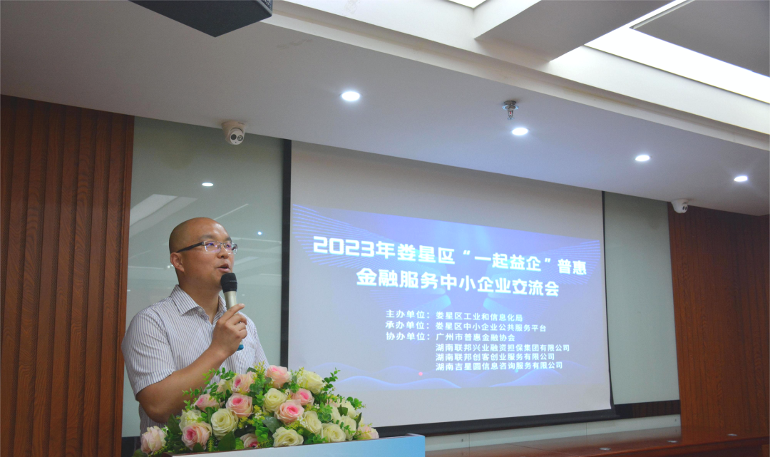為深入貫徹落實工信部“一起益企”中小企業(yè)服務(wù)行動,進(jìn)一步加強(qiáng)中小微企業(yè)金融基礎(chǔ)知識的了解,提升對金融產(chǎn)品和服務(wù)的認(rèn)知能力,著力促進(jìn)制造業(yè)和中小微企業(yè)融資,助力企業(yè)高質(zhì)量發(fā)展,4月21日,由婁星區(qū)工業(yè)和信息化局主辦,婁星區(qū)中小企業(yè)公共服務(wù)平臺承辦,廣州市普惠金融協(xié)會、湖南聯(lián)邦興業(yè)融資擔(dān)保集團(tuán)有限公司等服務(wù)機(jī)構(gòu)協(xié)辦的2023年婁星區(qū)“一起益企”普惠金融服務(wù)中小企業(yè)交流會在吉星金融大廈六樓舉行。