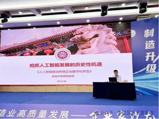 易海明主任以“制造業(yè)如何搶抓人工智能發(fā)展的歷史性機遇”為題,從認識人工智能模型,培育人工智能模型的迫切性,培育人工智能模型的戰(zhàn)略性要素,詳解人工智能模型培育案例和趨勢四個方面系統(tǒng)剖析了人工智能技術演進脈絡及其與制造業(yè)融合的核心場景,結合國內外標桿案例,為在場企業(yè)家描繪了AI賦能研發(fā)設計、生產流程優(yōu)化、供應鏈管理、質量控制和精準營銷的全鏈條圖景?;迎h(huán)節(jié),企業(yè)家結合自身轉型痛點踴躍提問,易主任就技術選型、投入產出比、安全風險等實際問題進行了針對性解答,現(xiàn)場交流氣氛熱烈。