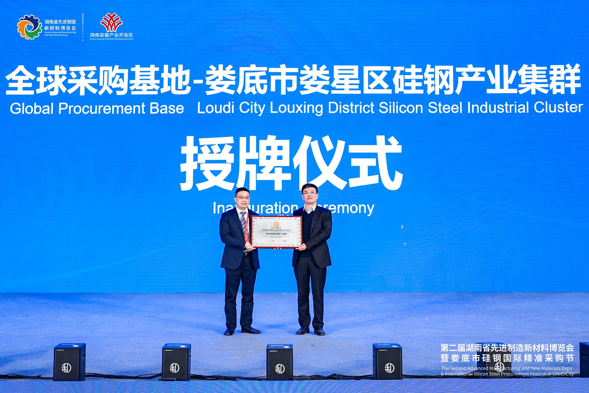 SGS審核人員對人文助力硅鋼產(chǎn)業(yè)各方面進(jìn)行綜合評價,人文在硅鋼產(chǎn)業(yè)帶方面所做的工作對婁底市硅鋼產(chǎn)業(yè)授牌發(fā)揮著至關(guān)重要的作用。11月20日至22日,“融通產(chǎn)業(yè)鏈 賦能材料谷”第二屆湖南省先進(jìn)制造新材料博覽會暨婁底市硅鋼國際精準(zhǔn)采購節(jié)在婁底市婁星產(chǎn)業(yè)開發(fā)區(qū)舉行。開幕式上,舉行了婁底市“硅鋼全球采購基地”授牌儀式,其中華菱漣鋼、宏旺新材等11家企業(yè)成為SGS全球采購基地首批認(rèn)證的婁底企業(yè)。婁底高校為婁底市婁星區(qū)硅鋼產(chǎn)業(yè)帶入駐成為全球采購基地賦能,助力婁底市硅鋼產(chǎn)業(yè)邁向全球采購基地新征程。