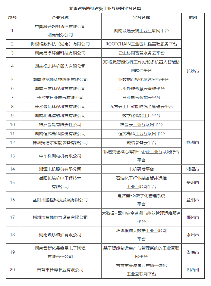 附件:湖南省第四批省級(jí)工業(yè)互聯(lián)網(wǎng)平臺(tái)名單