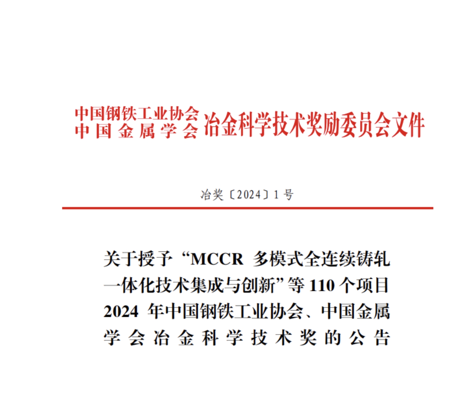 近日,中國鋼鐵工業(yè)協(xié)會、中國金屬學(xué)會冶金科學(xué)技術(shù)獎(jiǎng)獎(jiǎng)勵(lì)委員會發(fā)布2024年冶金科學(xué)技術(shù)獎(jiǎng)公告,決定對110個(gè)項(xiàng)目授予2024 年冶金科學(xué)技術(shù)獎(jiǎng)。