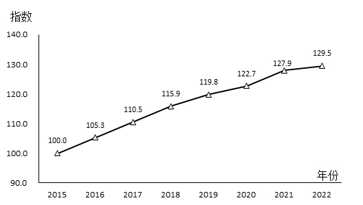 圖1:2015—2022年長(zhǎng)三角區(qū)域發(fā)展指數(shù)