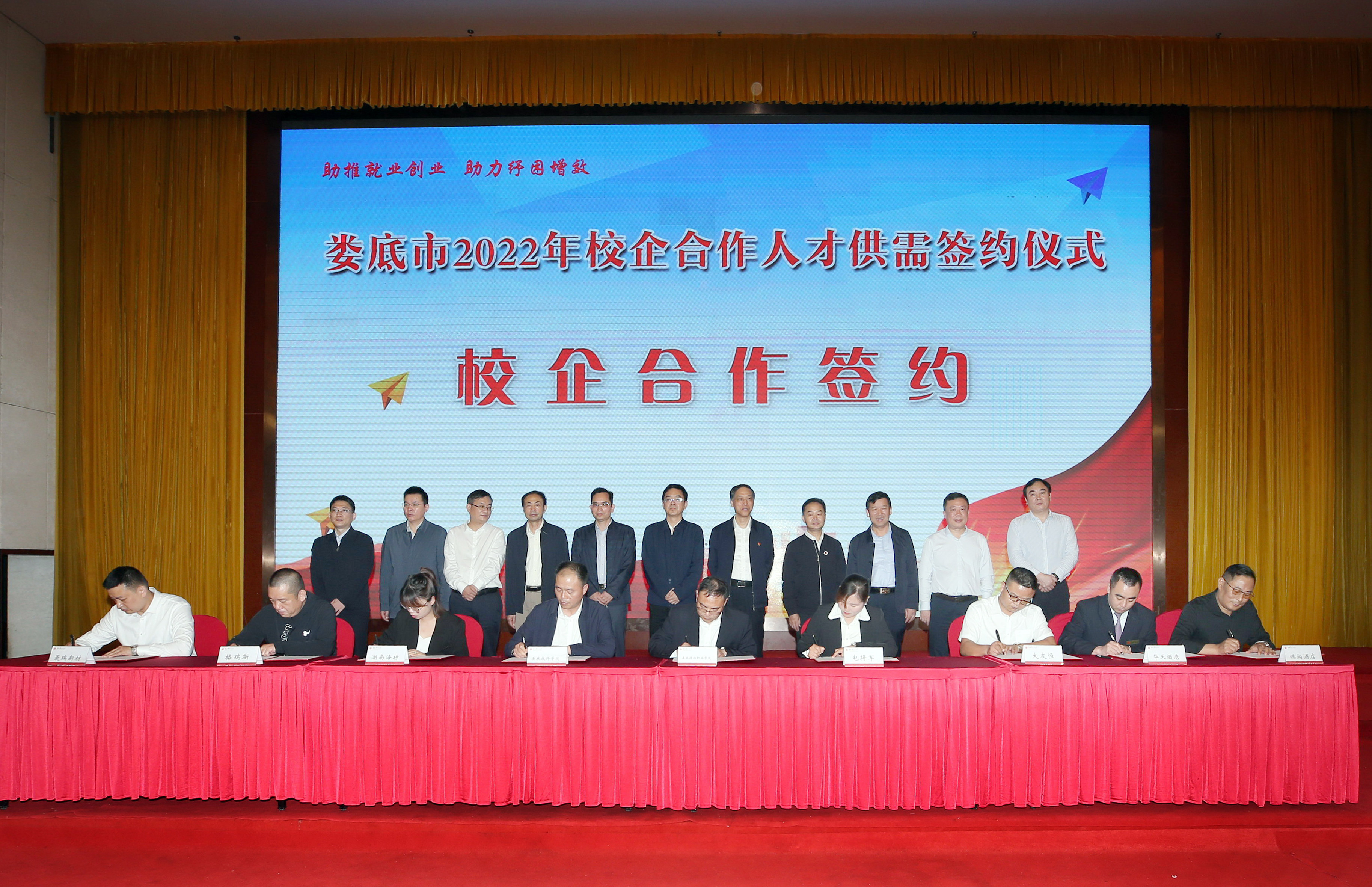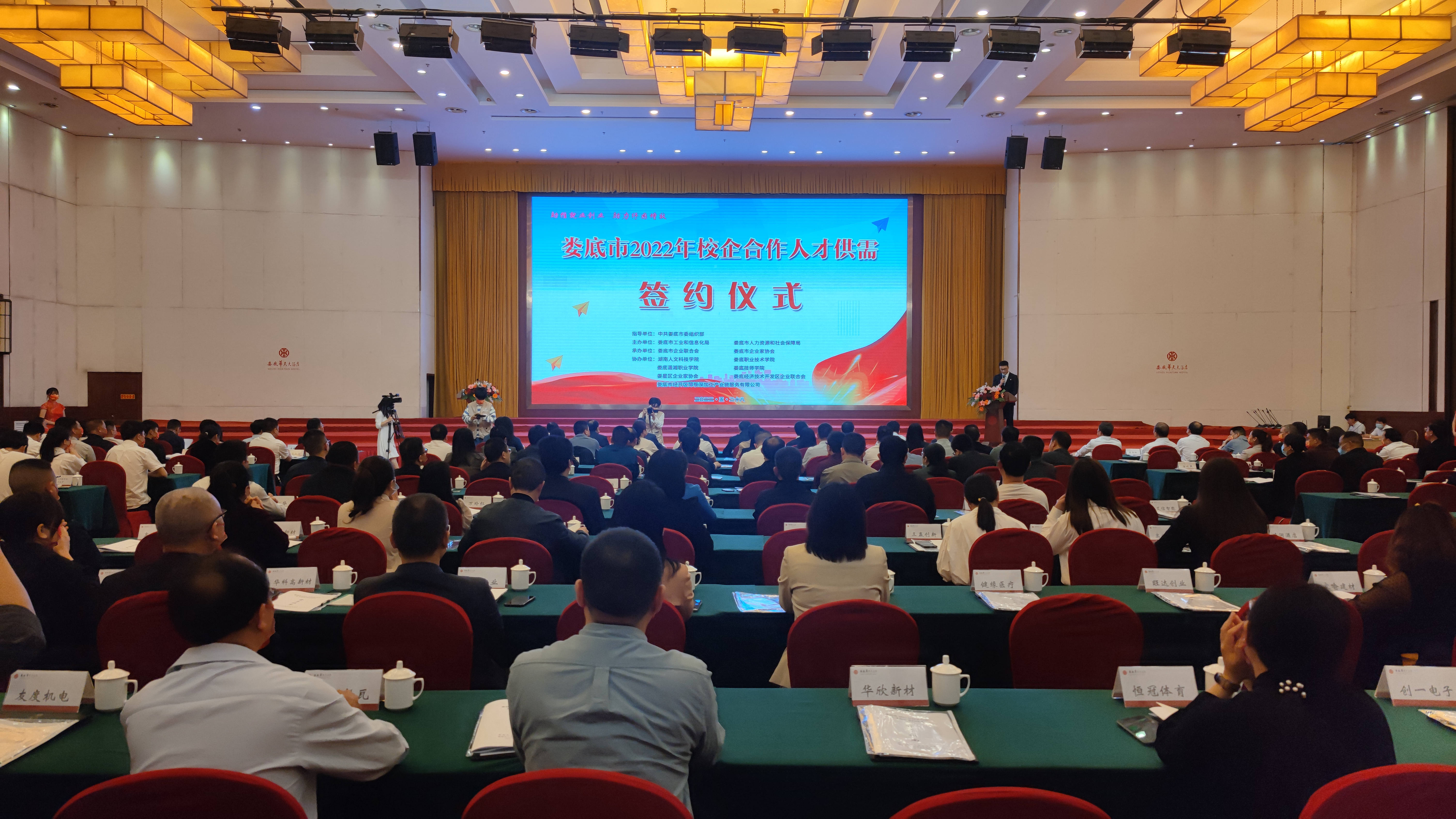 本報訊  5月28日,婁底舉行校企合作人才供需簽約儀式。湖南人文科技學(xué)院、婁底職業(yè)技術(shù)學(xué)院等4所院校與婁底經(jīng)開區(qū)、婁底高新區(qū)等5個園區(qū)簽訂校地合作協(xié)議,并與20家企業(yè)簽訂校企合作協(xié)議、應(yīng)屆畢業(yè)生就業(yè)意向協(xié)議。市委常委、市委組織部部長謝忠陽,市企業(yè)聯(lián)合會、企業(yè)家協(xié)會會長余明庭等出席。