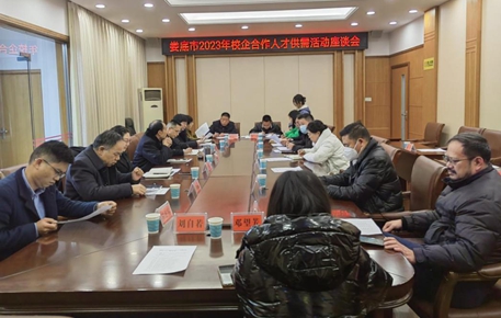 為貫徹落實(shí)湖南省“三高四新”發(fā)展戰(zhàn)略,全面推動(dòng)婁底中部地區(qū)“材料谷”建設(shè),助力婁底中小企業(yè)紓困增效,助力人才集聚,促進(jìn)經(jīng)濟(jì)發(fā)展。2023年2月13日下午,“婁底市 2023 年校企合作人才供需活動(dòng)座談會(huì)”在婁底市企業(yè)聯(lián)合會(huì)、企業(yè)家協(xié)會(huì)召開。婁底市人民政府原副市長(zhǎng)、市企業(yè)聯(lián)合會(huì)、企業(yè)家協(xié)會(huì)會(huì)長(zhǎng)余明庭出席并講話,市工信局二級(jí)調(diào)研員潘曉燕、市人才發(fā)展服務(wù)中心主任劉偦、湖南人文科技學(xué)院、婁底職業(yè)技術(shù)學(xué)院、婁底瀟湘職業(yè)學(xué)院等院校招生就業(yè)處負(fù)責(zé)人以及各縣市區(qū)企業(yè)家協(xié)會(huì)負(fù)責(zé)人參加此次座談會(huì)。
