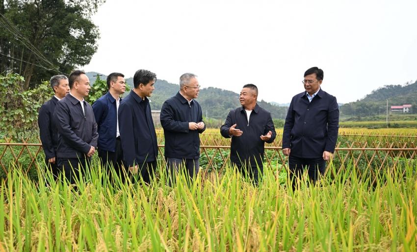 109日,沈曉明在婁星區(qū)水洞底鎮(zhèn)鎘低積累水稻品種示范基地察看水稻長勢。)